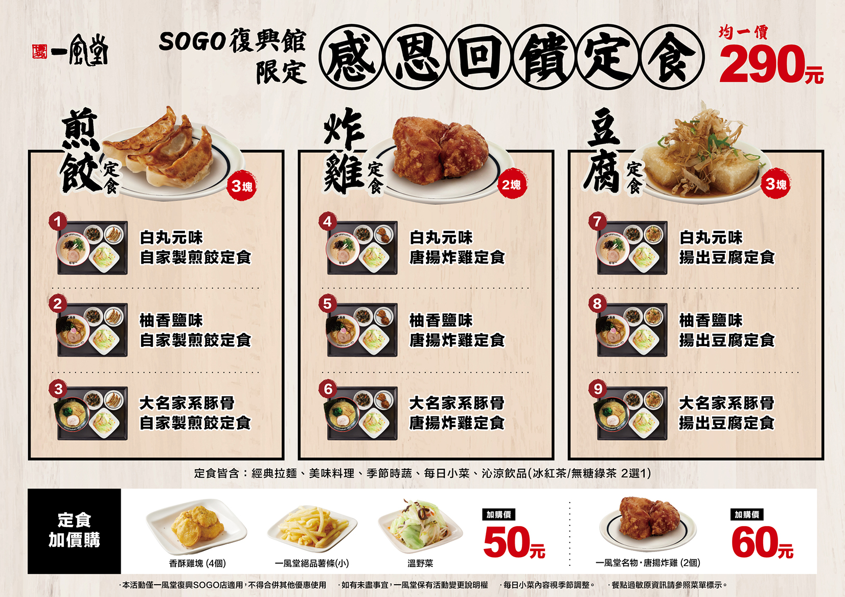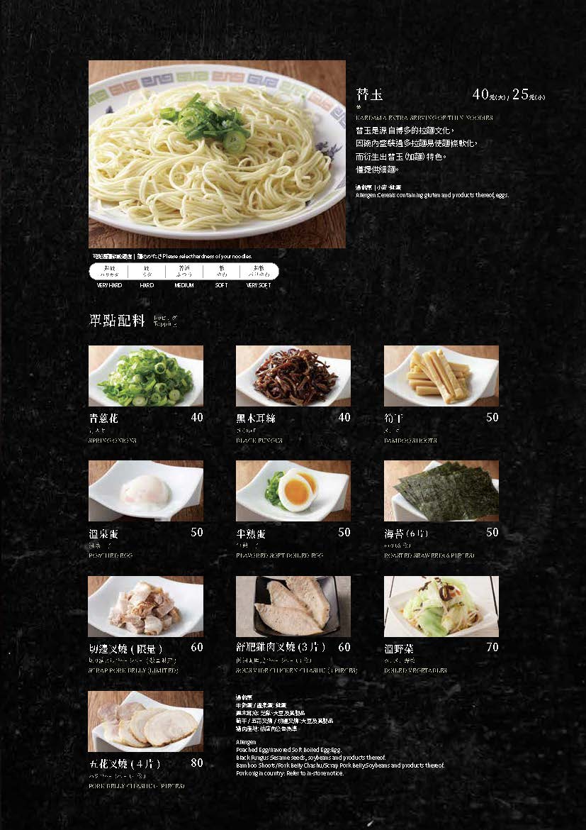 一風堂一般店舖菜單