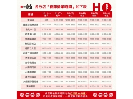 【台灣一風堂‧春節期間各店舖營業時間一覽表】