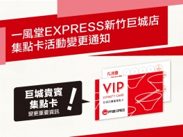 一風堂EXPRESS新竹巨城店集點卡活動變更通知