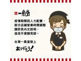 台灣一風堂預祝大家新年快樂!!MORE【台灣一風堂‧春節期間各店舖營業時間一覽表】